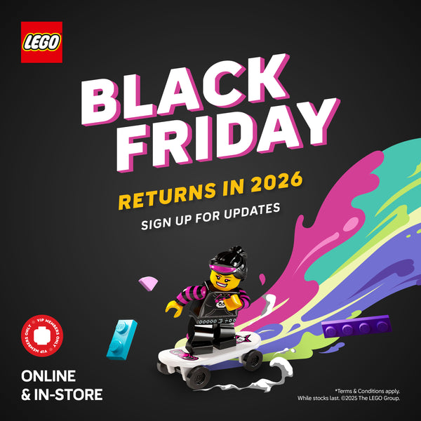 This offer is valid on 01.12.25, for one day only. Receive a FREE $50 AG LEGO® Certified Stores e-Gift Card when you spend $300 or more. Receive a FREE $100 AG LEGO® Certified Stores e-Gift Card when you spend $500 or more. Receive a FREE $180 AG LEGO® Certified Stores e-Gift Card when you spend $800 or more. Receive a FREE $250 AG LEGO® Certified Stores e-Gift Card when you spend $1000 or more. This promotion is valid online only (lego.bricksmegastore.com) in Australia only. Offer not available in New Zealand. Offer not available in-store. ONE per customer. Limit to one gift card per transaction, i.e. if you spend $800 or more, you will only receive 1 x $200 AG LEGO Certified Stores e-Gift card. E-Gift Card will be issued within 24 hours of transaction. Offer valid for members of the AG LEGO® Certified Store VIP program only. The offer is not redeemable for cash, it cannot be redeemed against a prior purchase and is not available in conjunction with any other offer. Offer not available with purchases of pre-orders. Offer is not available in conjunction with staff discount. If you return the product/s purchased to redeem the e-Gift Card and the total purchase equals less than the promotional spend threshold, then the e-Gift Card must also be returned. EFTPOS surcharges do not contribute to minimum spend threshold. AG LEGO® Certified Stores reserves the right to amend or cancel this promotion at any time without prior notice. Offer is not valid at LEGO.com, LEGOLAND® Parks, LEGOLAND® Discovery Centres or LEGO® Certified Store Dreamworld.