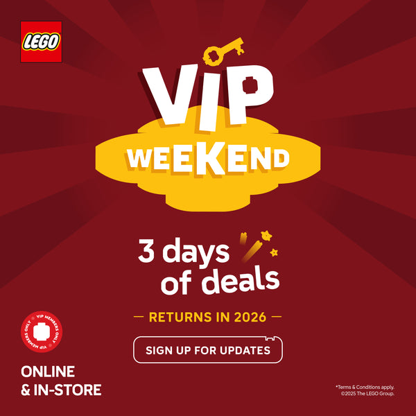 This offer is valid from 21.11.25 to 23.11.25. Receive Double VIP Points on all purchases. Offer is valid online (lego.bricksmegastore.com) and in all AG LEGO® Certified Stores in Australia and New Zealand. Offer valid for members of the AG LEGO® Certified Store VIP program only. Offer not available with purchase of pre-orders. The offer is not redeemable for cash; it cannot be redeemed against a prior purchase and is not available in conjunction with staff discount. AG LEGO® Certified Stores reserves the right to amend or cancel this promotion at any time without prior notice. Offer is not valid at LEGO.com, LEGOLAND® Parks, LEGOLAND® Discovery Centres or LEGO® Certified Store Dreamworld.
