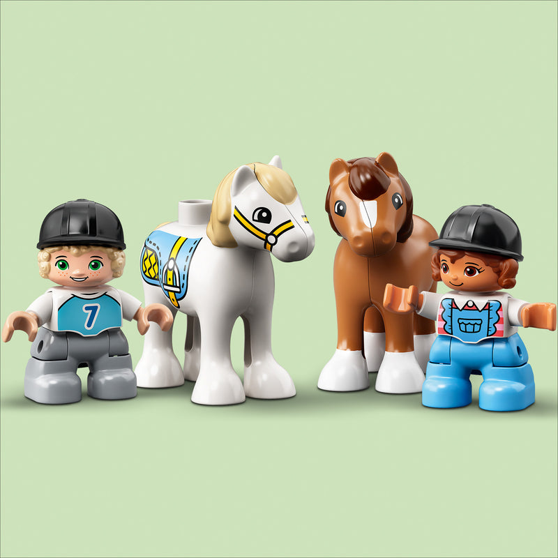 - LEGO® DUPLO® Town Horse Stable and Pony Care (10951) inspires endless imaginative fun and playful learning with 2 cute ponies and everything a young animal lover needs to care for them.