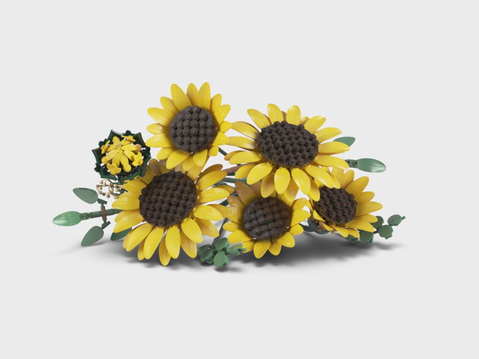 - LEGO® SUNFLOWERS – The bouquet includes 6 sunflowers in various stages: 1 sunflower bud, 3 sunflowers beginning to bloom and 2 big fully opened sunflowers