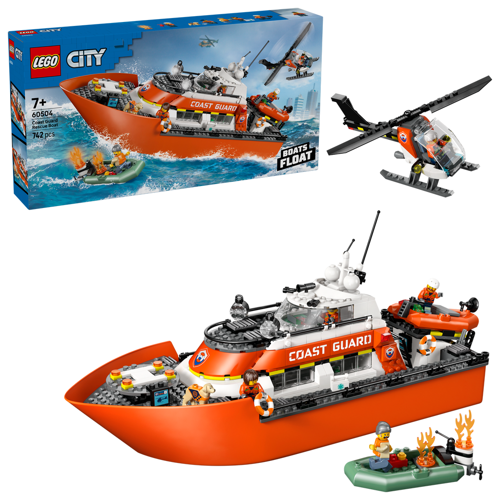 - FLOATING BOAT TOY FOR AGES 7+ – This LEGO® City Coast Guard Rescue Boat & Helicopter (60504) building kit includes 3 floatable model boats and an array of realistic features for imaginative play