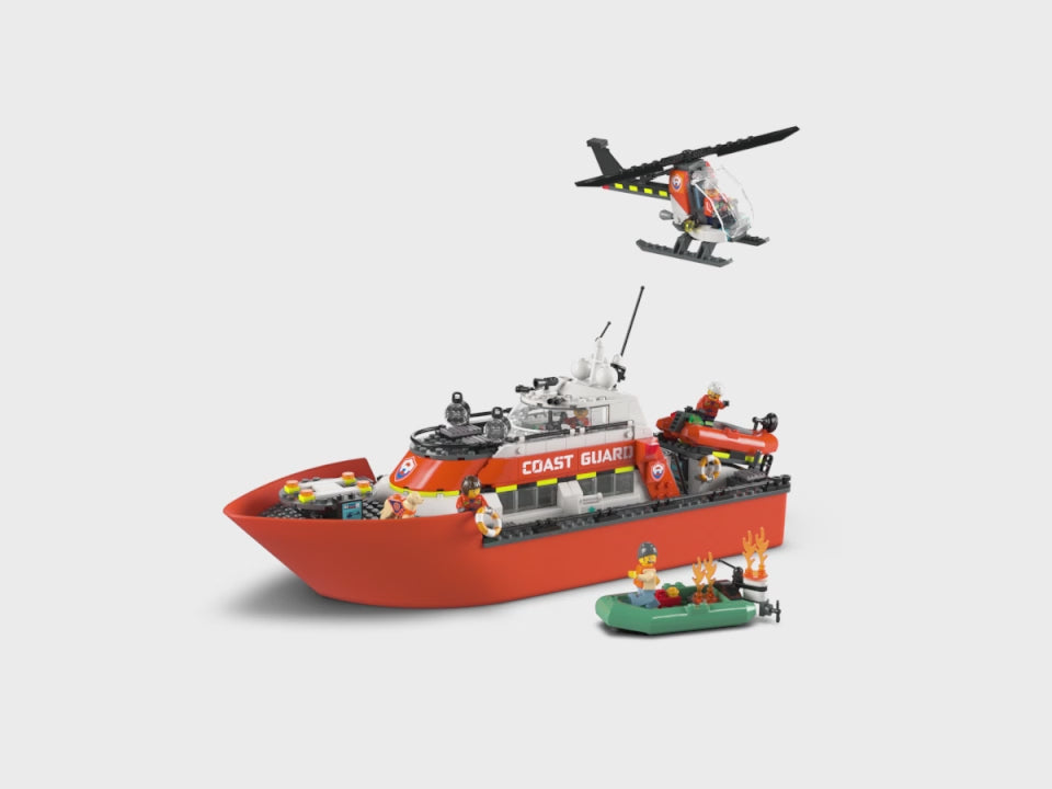 - WHAT’S IN THE BOX – Includes everything kids need to build a floating LEGO® coast guard patrol boat, toy rescue helicopter and 2 floating dinghies, plus 5 minifigures and a dog figure