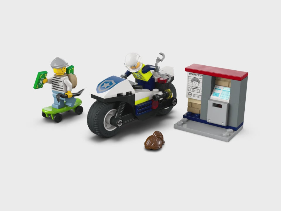 - Police motorbike toy for ages 4 and up – Introduce your everyday hero to a world of imaginative play with this LEGO® City Police Motorcycle Chase playset
