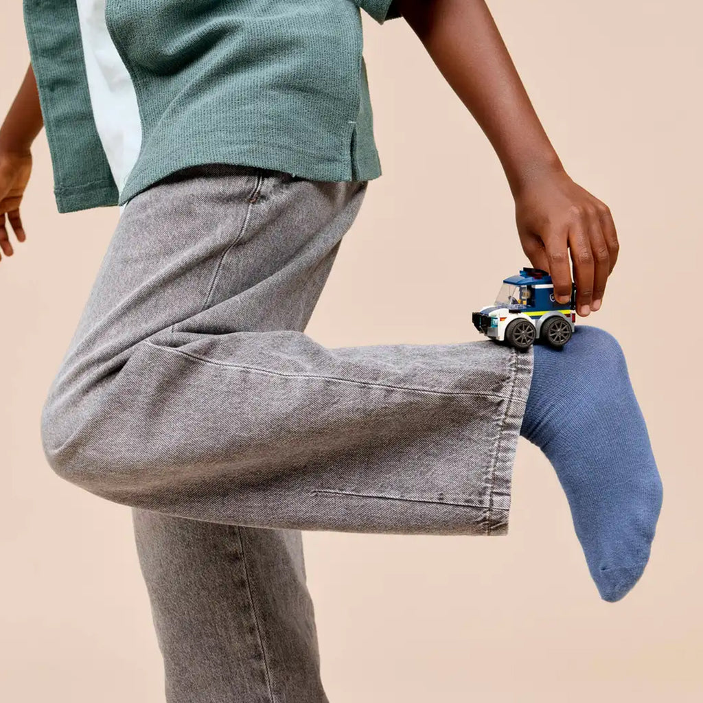 Unleash action-packed police adventures with the LEGO® City Rides – Police Truck (60481) mini building kit for kids aged 5 and over. This compact, buildable toy police truck with cool alloy wheels, low-profile rubber tyres, a push bar, prison bars and toy emergency lights offers young builders a fun way to explore the world of LEGO City. The set also includes a LEGO City Rides police officer junior minifigure that fits perfectly in the driver’s cab for hours of pretend play.