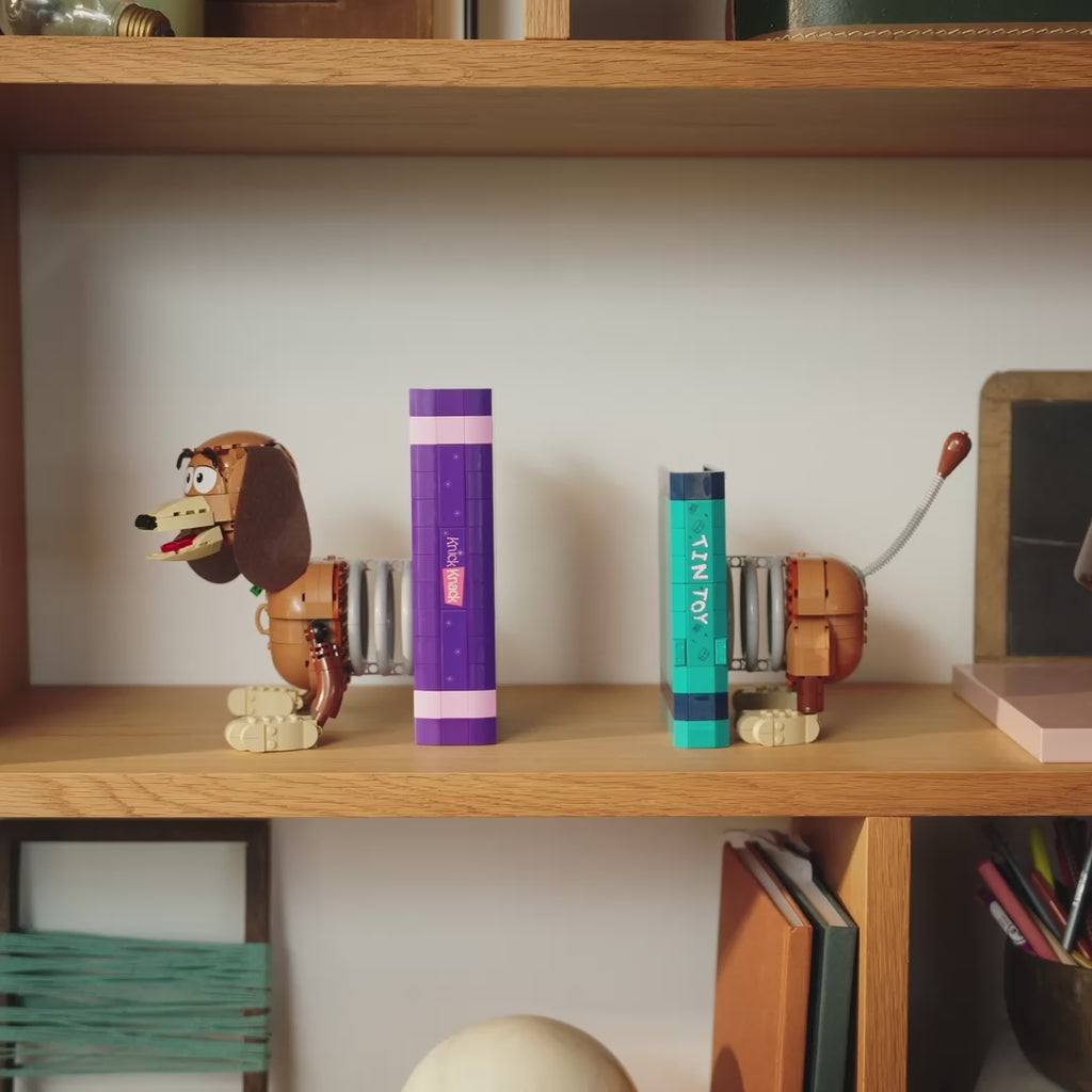 - DECORATIVE BOOKENDS DISPLAY – This Toy Story Slinky Dog Bookends (43301) dachshund building set celebrates the LEGO® ǀ Disney and Pixar character with 2 books, 2 minifigure characters and more