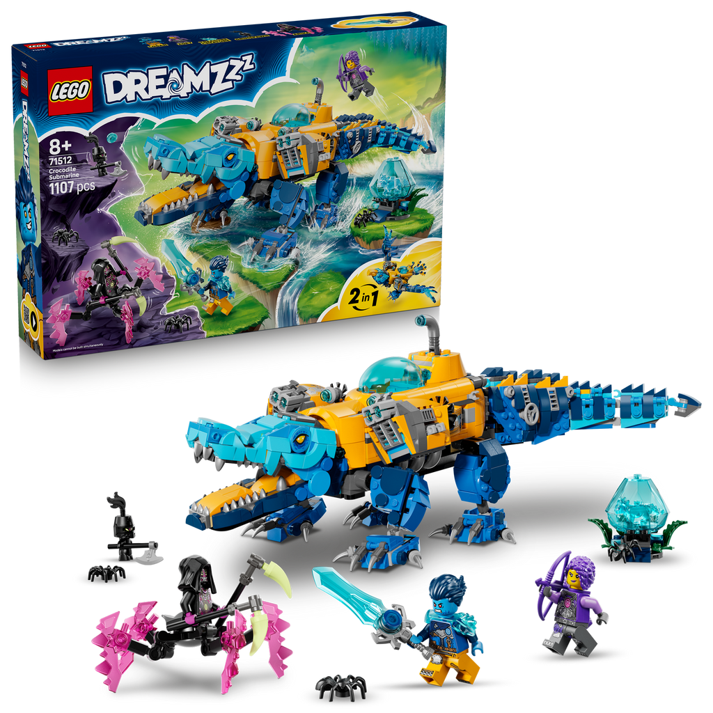 Kids unleash creativity with the LEGO® DREAMZzz™ Crocodile Submarine (71512) building set for boys and girls aged 8 and over. It offers 2 action-packed building options, letting dreamers build the submarine toy into a crocodile or flying eagle toy.