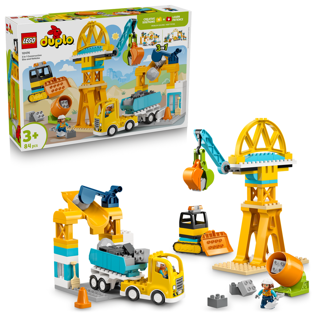 - LARGE CONSTRUCTION TOY FOR TODDLERS – This 3 in 1 Construction Site and Vehicles (10476) set includes 2 figures and 84 bricks to make lots of LEGO® DUPLO® Town truck toys and building options