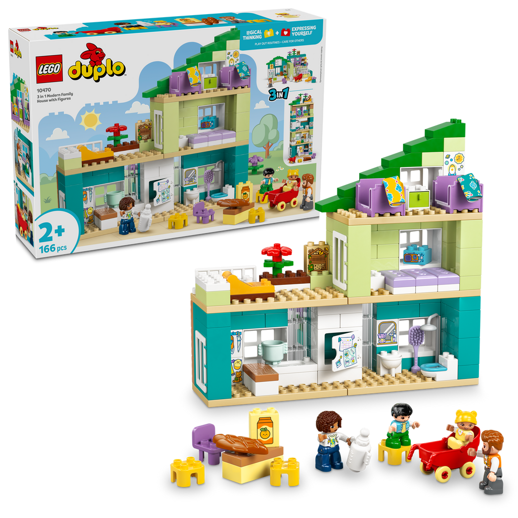 - DOLLHOUSE TOY – The detailed 3 in 1 Modern Family House with Figures (10470) toy lets toddlers act out routines and enjoy social and emotional learning activities as they pretend-play being family members