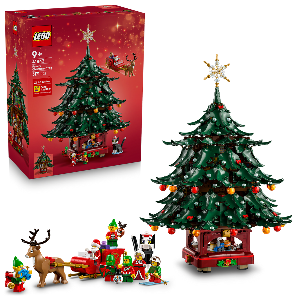 Create a family tradition and build a fantastic Christmas centrepiece any festive decor fan would be proud to own with this Family Christmas Tree Decoration (41843) LEGO® building set. This collectible celebrates Christmas with a fun family bonding activity centred on a LEGO display set and makes a great early Christmas gift for families and kids aged 9 and over. The building kit includes a large Christmas tree on a base with opening panels and hidden rooms. There’s a sleigh for Santa Claus, a reindeer figure, snowman and reindeer ‘cuddly toys’, a brick-built Cataclaws, Mrs. Claus and 5 industrious elves, along with fun accessories. After the holiday, the tree separates into sections for easy storage, ready for next Christmas.