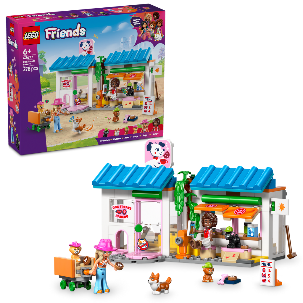 - PLAY OUT PET STORIES – Create tail-wagging stories for pups and their owners at the LEGO® Friends Dog Treats Bakery (42677) which includes an oven, coffee machine, refrigerator, seating and more