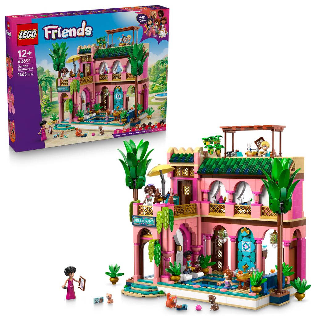 - 5 LEGO® FRIENDS CHARACTERS – The LEGO Friends Garden Restaurant (42691) includes Zahra, Aliya, Autumn, Zac and Olly minidolls, and 3 cat figures, so kids can create a model to play with and display