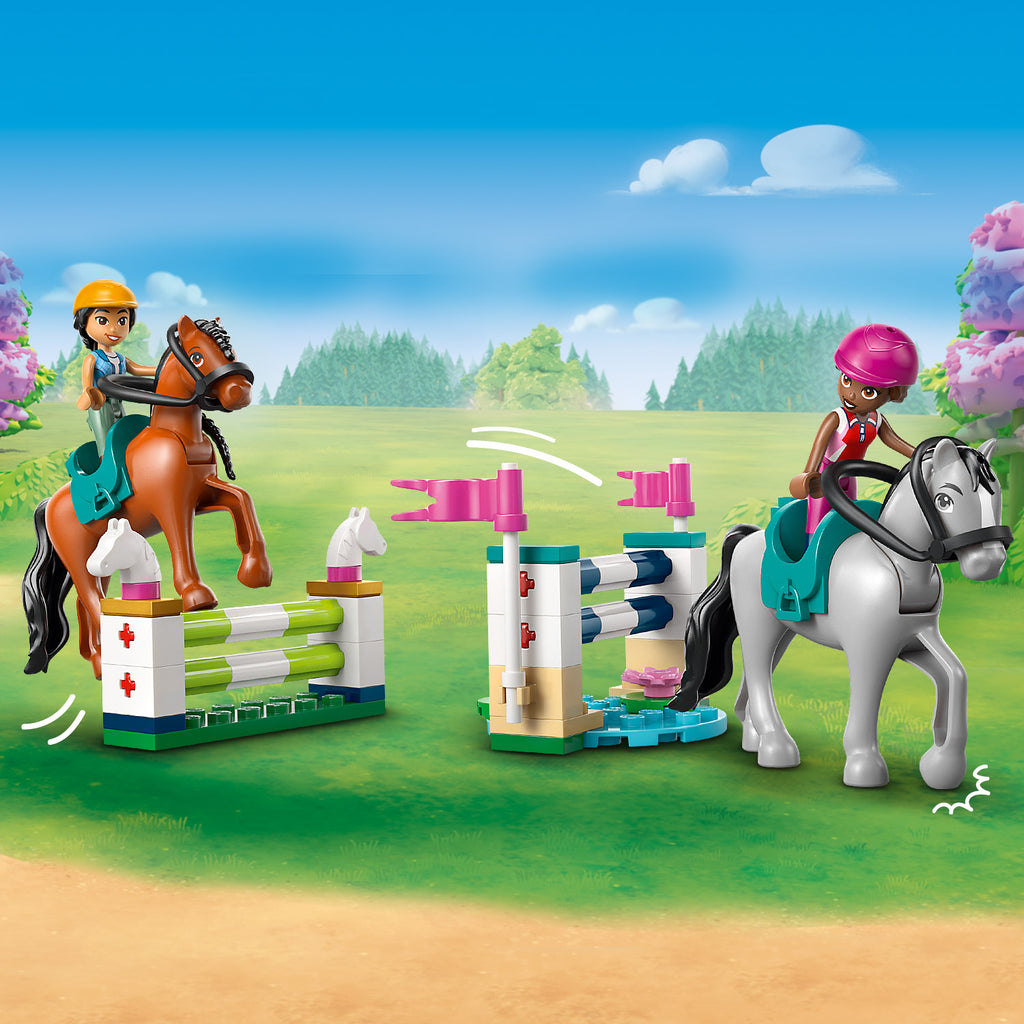 Saddle up for fun times as girls and boys aged 7 and over explore the LEGO® Friends Horse Stable and Riding Academy (42688) set for kids. Play out every stage of caring for horses as Liann and Aliya take lessons with instructor Cindy. Saddle the 2 horses and ride them over the jumps. Then try different jobs like transporting hay in the wheelbarrow or cleaning and feeding the horses. After a busy day, it’s time for a sleepover in the cosy beds above the stables.