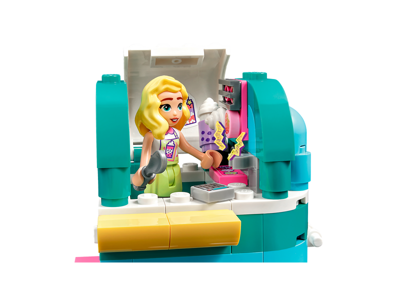 - 2 mini-dolls and accessories – The set comes with LEGO® Friends characters Nova and Matilde, whipped cream, 2 bubble tea bottles, a cash register and table, plus a mascot with a menu card