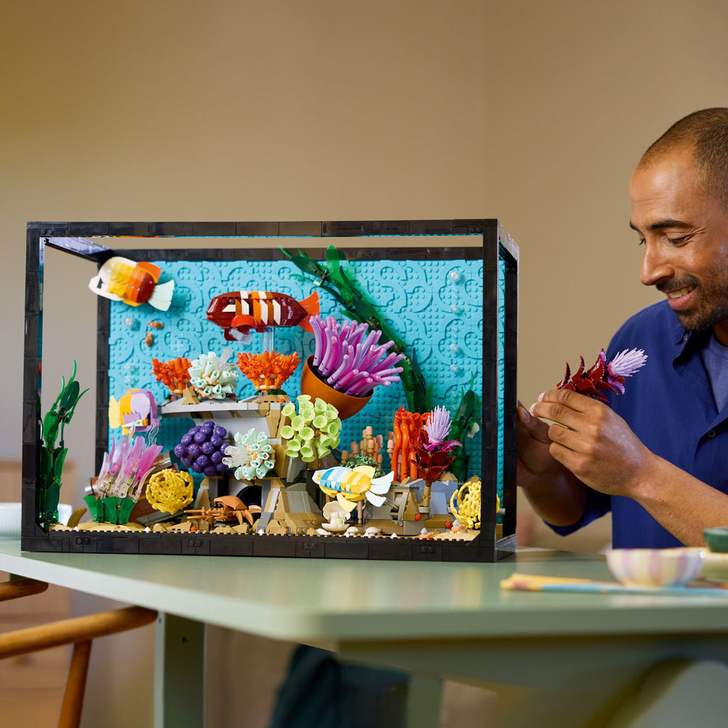 - Fish tank decor building kit – Take quality time out or treat a loved one with this LEGO® Icons Tropical Aquarium set for adults