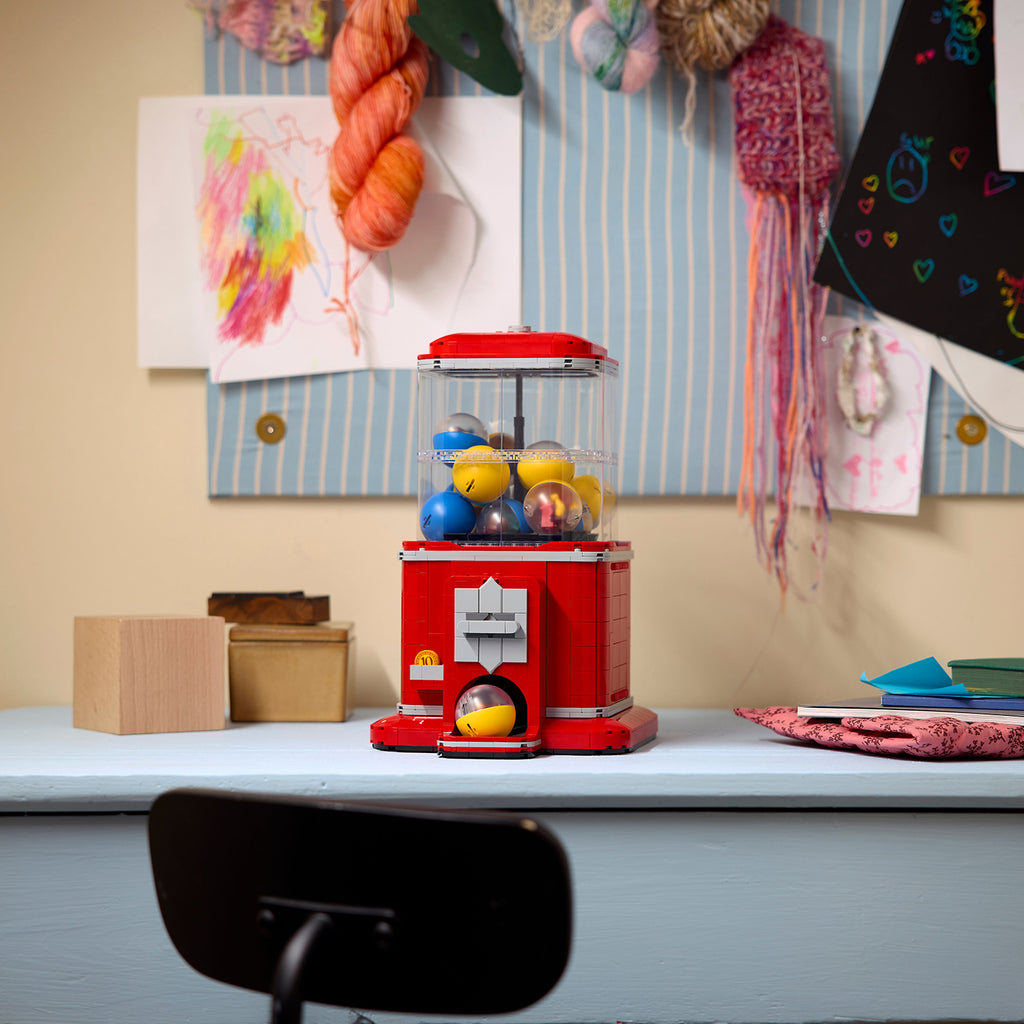 Hark back to simpler times and create vintage-style decor with this Minifigure Vending Machine building kit for adults (21358). A top creative gift for men, women and lovers of retro art and design, this LEGO® Ideas set challenges you to recreate the look and functionality of a classic vending machine. Build and display your creation, insert a LEGO coin element in the slot and turn the handle to release 1 of 16 capsules – the handle clicks when turned, just like the real thing.