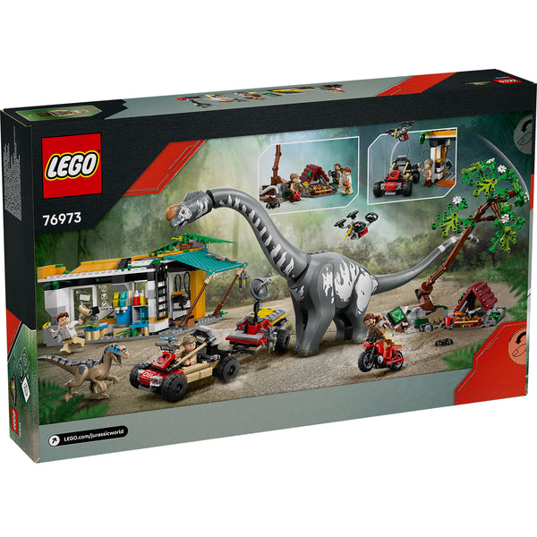 Thrilling chases and action await kids and movie fans aged 7 and up in this Raptor & Titanosaurus Tracking Mission (76973) LEGO® Jurassic World building kit. The dinosaur gift for boys and girls features moulded Titanosaurus and Velociraptor toy figures and 3 minifigures: Zora Bennett, Martin Krebs and Dr. Henry Loomis. The Velociraptor has a moving jaw and the Titanosaurus has a movable neck, head and tail. The interactive toy playset includes a charging station, an off-road vehicle with a trailer, a syringe case with 3 syringes, a motorcycle, buildable drone, camp area with falling tree function and more.