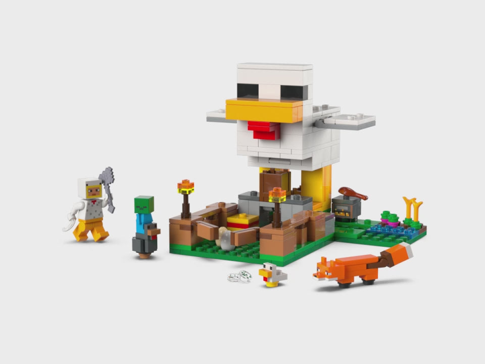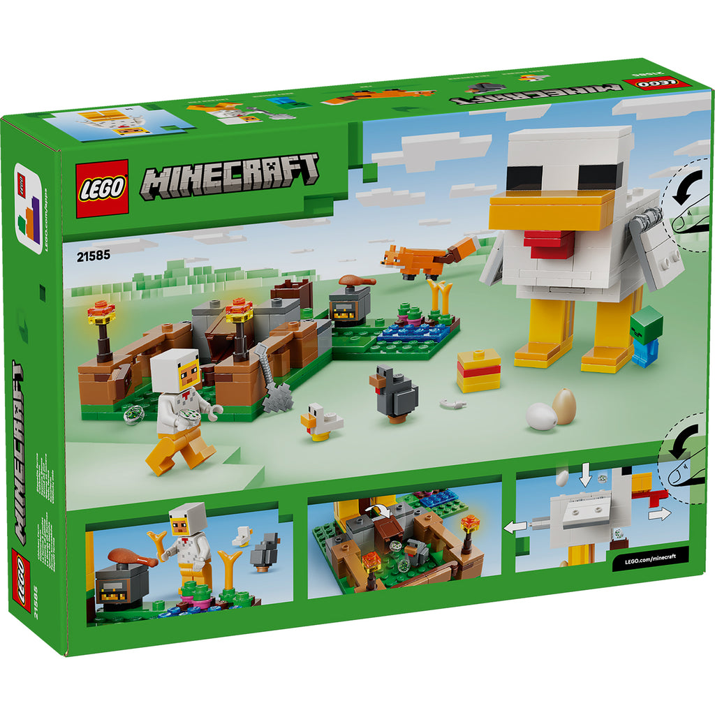 - MINECRAFT® FARM CHARACTERS – The LEGO® Minecraft Chicken Farm (21585) set includes a Chicken Fan minifigure, plus a baby zombie (who likes to ride the chicken), fox, cold chicken and a baby chicken