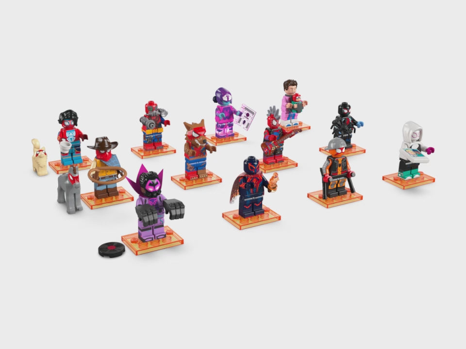 There is 1 surprise collectible Spider-Man toy construction minifigure in each box and a total of 12 to collect: Miles Morales/Spider-Man, Miguel O’Hara/Spider-Man 2099, Gwen Stacy/Spider Gwen, Hobie Brown/Spider-Punk, Pavitr Prabhakar/Spider-Man India, Miles G. Morales/Prowler, Peter B. Parker/Spider-Man & May “Mayday” Parker, Margo Kess/Spider-Byte, Peter Parker/Werewolf Spider-Man, Patrick O’Hara/Web-Slinger, Petra Parker/Cyborg Spider-Woman and Charlotte Webber/Sun-Spider.