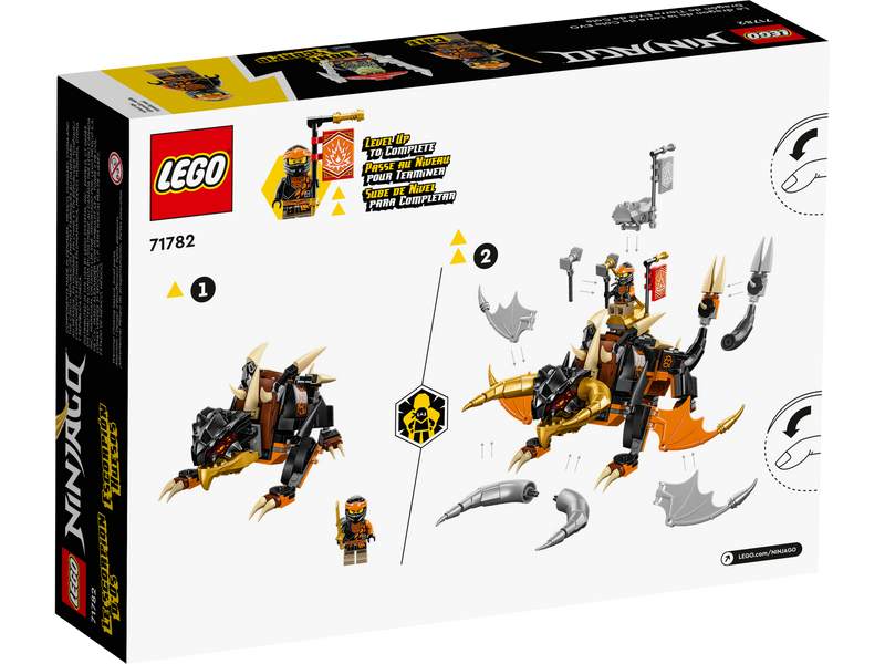 Kids aged 7+ will be excited to stage enthralling battles with this LEGO® NINJAGO® Cole’s Earth Dragon EVO (71782) playset. During the action, kids can upgrade the posable dragon toy to make it even bigger and more powerful by adding golden wings, horns and a tail.