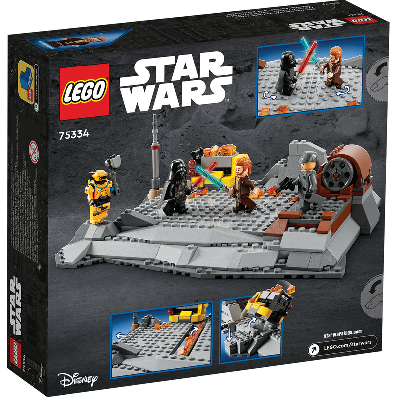 Relive a fiery battle between Obi-Wan Kenobi and Darth Vader with this LEGO® Star Wars™ (75334) buildable toy playset. It features a battlefield with 2 rotating battle platforms, a battlefield-splitting fire pop-up function and a mining cart that can be knocked over. There are also 4 LEGO minifigures included – Obi-Wan Kenobi and Darth Vader, each with lightsabers, Tala Durith and droid NED-B – to play out Star Wars: Obi-Wan Kenobi scenes.