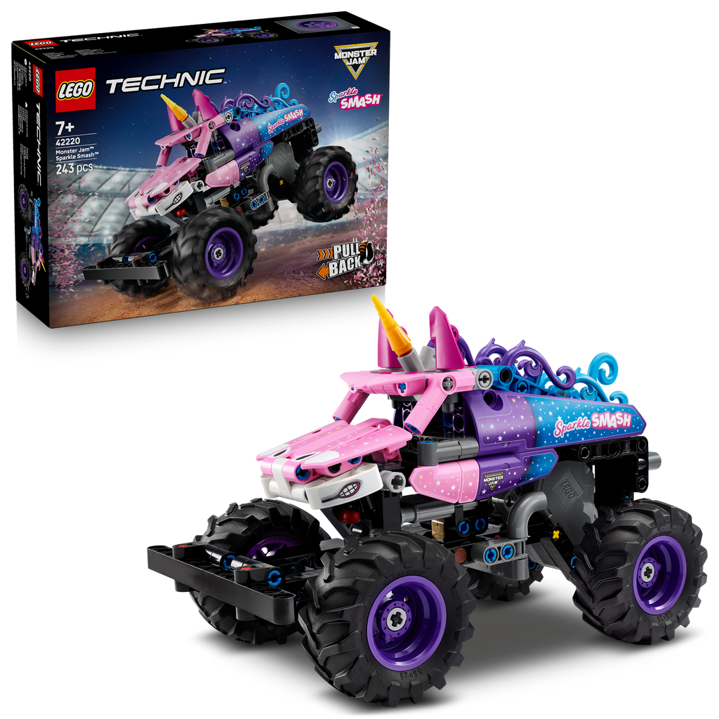 - MONSTER JAM™ BUILDING TOY – The LEGO® Technic Monster Jam Sparkle Smash™ Pull-Back truck (42220) offers hours of play for boys, girls and kids aged 7+ who enjoy monster trucks and unicorn toys